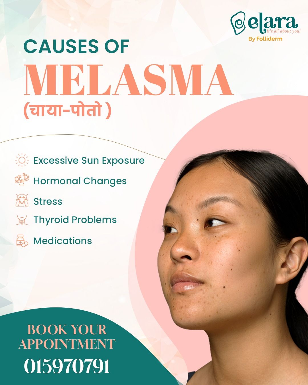 The cause of melasma is complex.Melasma is typically triggered by two main risk factors: hormonal changes and UV